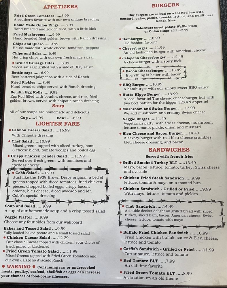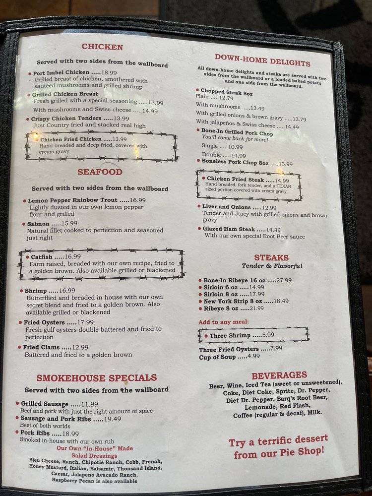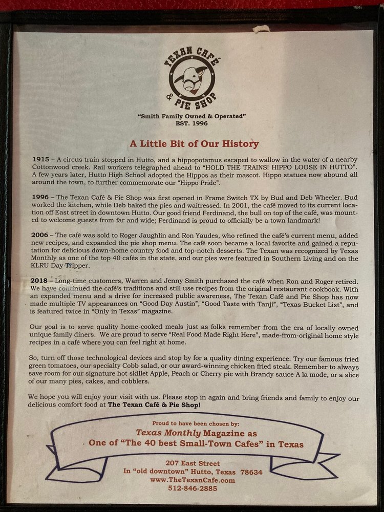 Texan Cafe & Pie Shop Menu